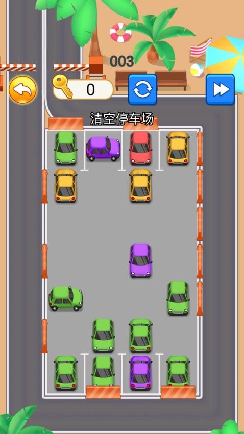 1、停车仔细观察:停车场开局仔细观察,制定合适的挪动计划完成挑战。
