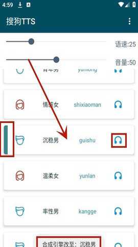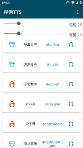 9.在软件主界面可以选择各种不同的语音,直接点击能够切换,右边的耳机可以进行试听