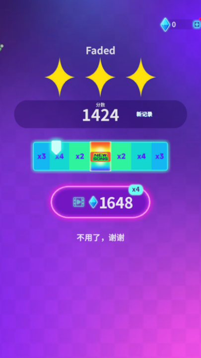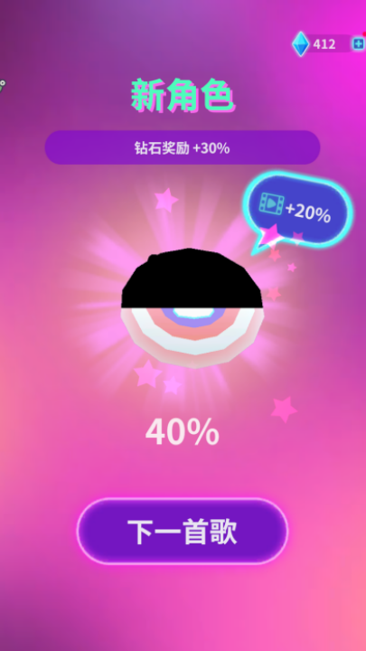 5、通过关卡可以解锁新的角色,钻石奖励+30%,点击下一首歌曲继续挑战。