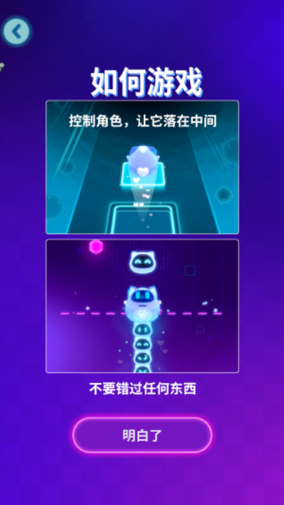 1、启动节奏音乐盒最新版就可以显示操作提示,控制角色,让它落在中间;
