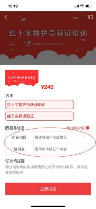 4、确认培训信息无误后,再次点击“立即报名”按钮,进入下一步操作。