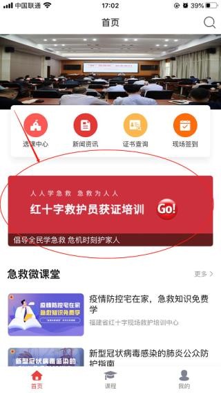 1、打开人人急救app首页面,找到“获证培训”图片并点击进入相关页面。