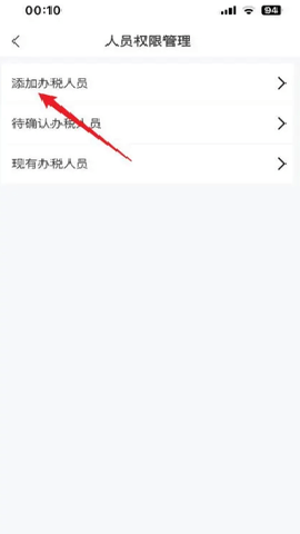 进入到人员权限管理页面,点击“添加办税人员”。