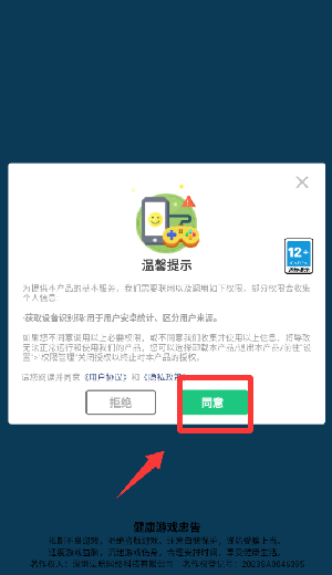 1、点击温馨提示里的同意并继续。