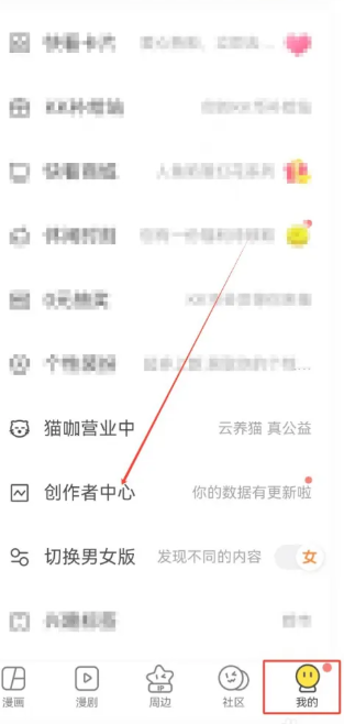 1.打开手机的快看漫画软件,在我的页面点击下面的创作者中心选项。