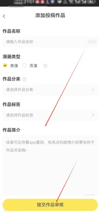 4.最后输入作品内容,点击下面的提交作品审核即可。