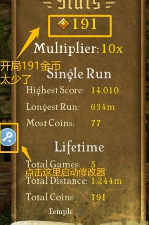 4.修改不是万能的,也会有一部分游戏不能修改,这里我们拿神庙逃亡游戏进行举例