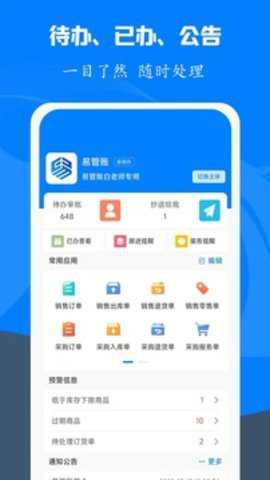 易管账是成都博腾软件有限公司推出的在线订货系统,更加便捷高效的处理方式让你在线处理各种工作事物。清晰的报表展示,让你可以清晰的看到全面的经营数据统计。轻松办公,帮助你省时省心。