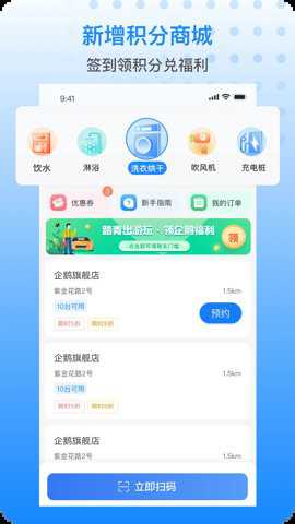 1、用户可以在线预约使用共享设备,无需出门就能满足自己的洗衣、饮水、淋浴等生活需求。