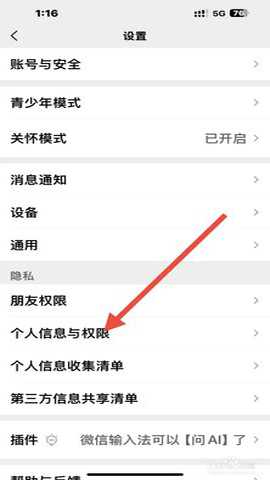 接着点击 “个人信息与权限”。