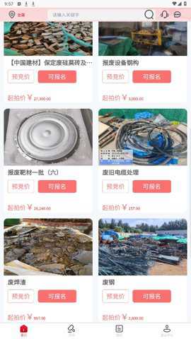 宜企拍是由中车哈尔滨车辆有限公司推出的废旧资源拍卖平台,用户可以在软件中拍卖各种类型的废旧物品和材料,钢铁、机器、木材等资源都能进行拍卖,商品资源丰富,有需要拍卖废旧物品直接搜索就能找到,帮助广大公司企业们更好的处置闲置废弃资源,并随时查看最新的废品相关资讯。