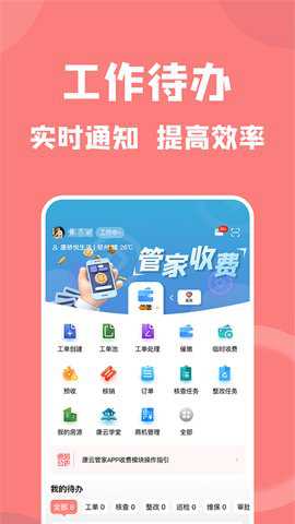 4、无论是在线交流、房屋租售、核销功能还是工单跟踪,康云管家都能够为用户提供便利和高效的物业管理服务。