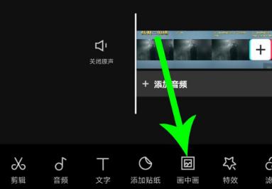 在剪映中导入视频后单击画中画,接着单击新增画中画。