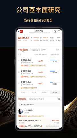 模拟组合功能:用户可以通过模拟组合功能来跟随自己喜欢的投研人员进行虚拟投资,并观察其表现。