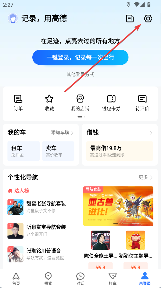 1、打开高德地图app,进入“个人中心”,点击右上角的螺母按钮