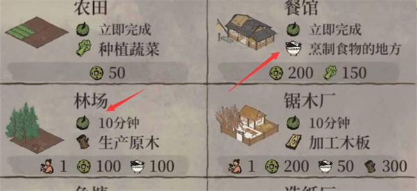 3、除了水井和画室多建之外,餐馆和林场到后期也只需要4个就足够了。林场生产木材,餐馆烹饪食物必不可少。