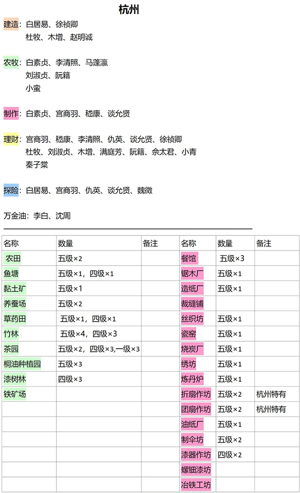 还是以徽州的特有资源为主,一级的作坊是为了完成漕运的任务,油菜花田比较多但主要承担观赏作用,因为靠徽州产的蔬菜也已经爆仓,不怎么用到。除了特有资源就是生产茶叶、竹子、铁矿、铁板。