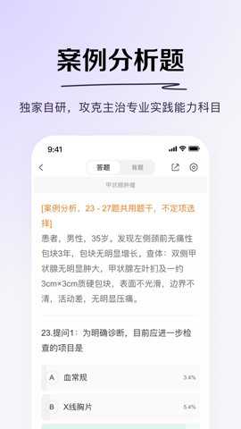 1、所有题目均由三甲医院主治以上专家生产,并经过四轮专业审核及内测,每题平均解析内容达到500字。