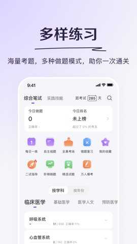 4、专为医护人员打造的应用,通过独创的阶梯复习法,帮助用户科学轻松过医考。