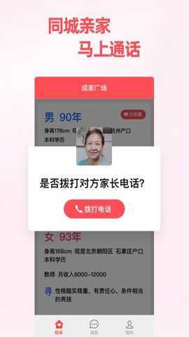 3、个性化服务:成家相亲手机版提供个性化的婚恋顾问服务,专业的建议和指导,帮助他们成功找到合适的伴侣。