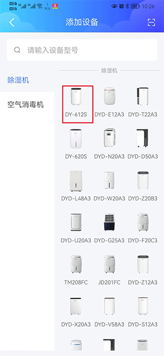 二、选择要添加的设备型号,如DY-612S