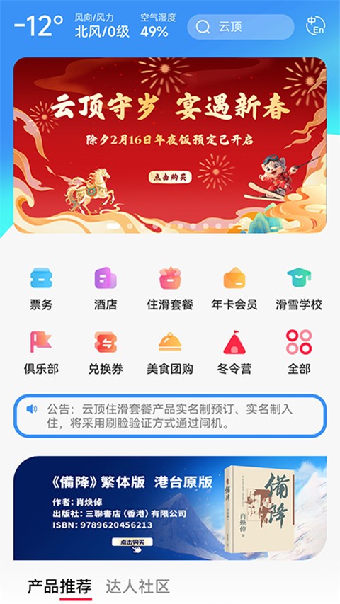 3、天气预报:推送每日天气情况,便于滑雪前提前了解天气,做好出行准备工作。