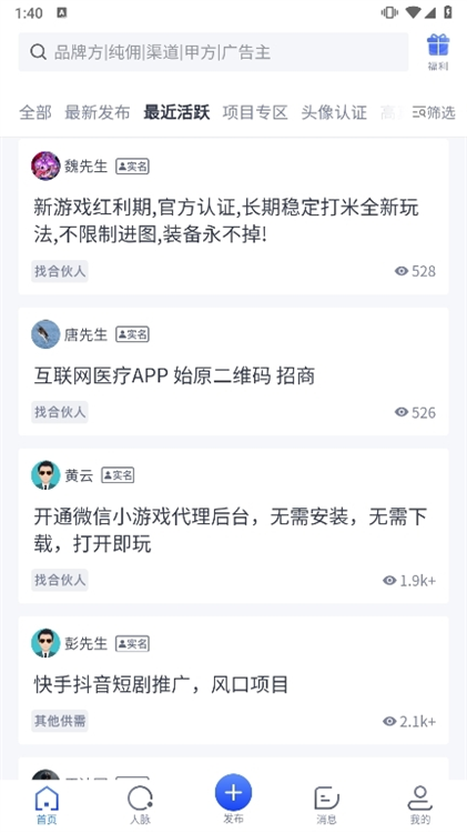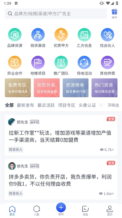 用户可随时发布商务合作需求(如招商、代理、渠道合作等),信息即时触达目标资源池,吸引优质伙伴主动联系。