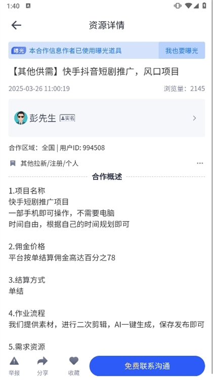审慎筛选项目:优先选择带有“平台认证”“用户好评”标签的合作方;仔细阅读项目详情、合作条款及资质证明。