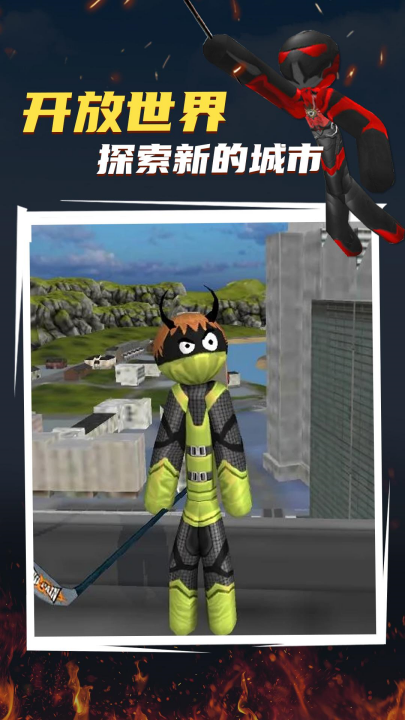 赛博火柴人最新版本是一款融合3D动作、开放世界探索与超级英雄题材的移动端游戏,玩家将扮演拥有蛛丝般绳索技能的火柴人英雄,在庞大而危机四伏的都市中展开惩恶扬善的冒险。游戏通过左侧虚拟摇杆控制移动,右侧按键实现绳索发射、跳跃、攻击及武器切换等操作,玩家可利用绳索实现高空滑翔、建筑间摆荡穿梭,甚至操控绳索精准攻击敌人,这种独特的移动与战斗机制赋予游戏蜘蛛侠式的动态体验。