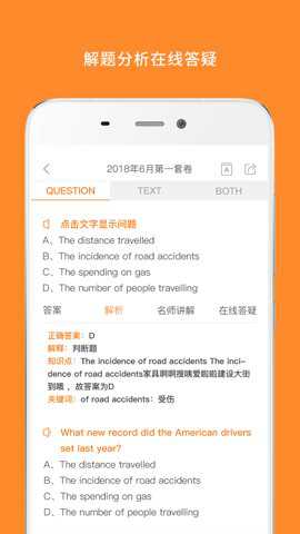 1、每一项听力内容均含有题目选项、音频、听力原文,并提供权威详细的解析。
