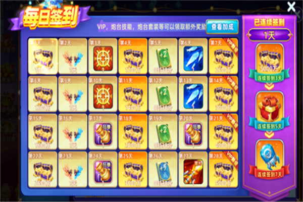 月卡后可立即获得58万金币等道具,以及自动开炮功能,月卡期间内每天可领取10万金币和5钻石。