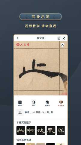 1. 多种笔画模式:掌上碑帖支持多种不同笔画模式,在临摹过程中可以切换使用。