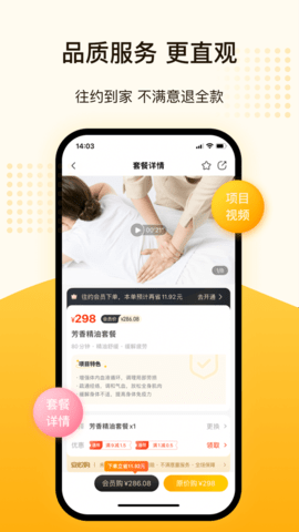 1、丰富的项目选择:用户可以根据自己的需求,在中医推拿、精油养生、理疗保健等多个项目中进行选择,满足不同用户对健康养生的需求。