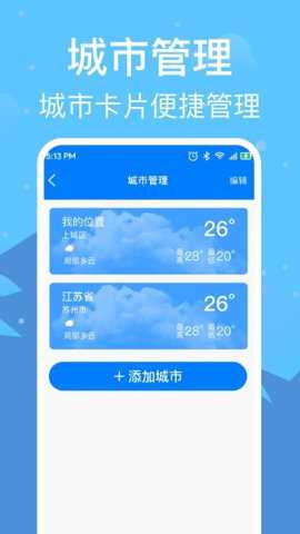 2、确保用户获得准确的天气信息。用户还可以添加多个城市,方便同时关注不同地区的天气情况。