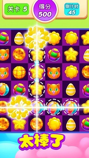 4、丰富多样的关卡和消除玩法,每个关卡都有时间限制和目标点,你可以根据自己的喜好选择挑战。