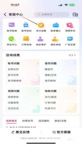 进入“客服中心”,选择“支付设置”。