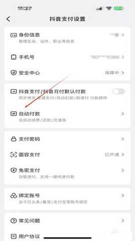 在“抖音支付设置”里,选择“自动付款”。