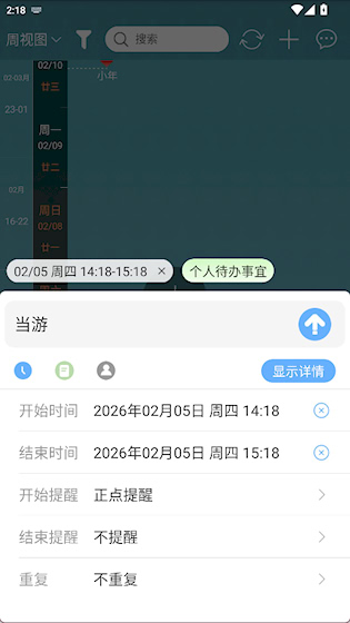 以自然流水式时间轴呈现过去、现在与未来的事件,比传统日历更直观清晰,便于用户把握整体节奏与关键节点。 2、多样化待办管理 支持设置一次性、周期性或跨时间段的任务,并可标记参与人、地点及备注,满足复杂场景下的任务追踪需求。 3、智能事件提醒 自动提醒生日、证件到期、课程安排等特殊事件,覆盖常规日历难以处理的个性化时间节点,避免遗漏重要事项。 4、联系人全景档案 整合通讯信息、交往记录、共享文档及关联待办,构建每位联系人的完整互动画像,提升人际关系维护效率。 5、信息库模板丰富 提供备忘、周报、会议纪要、学习计划等多种内容模板,支持图文视频混合编辑,适配不同场景的信息记录需求。怎么创建待办