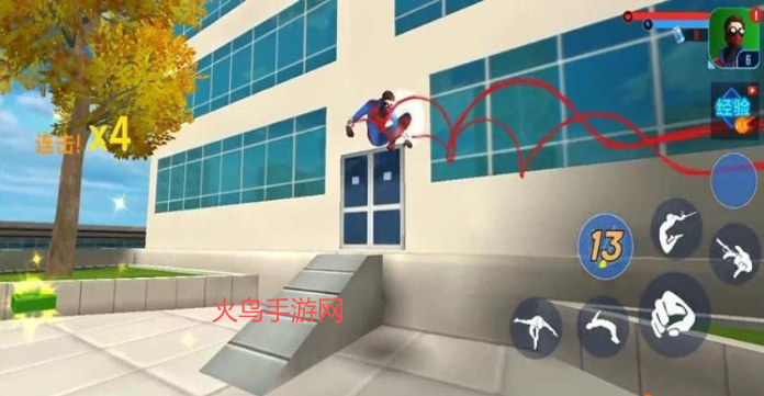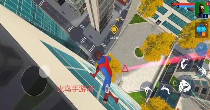 高楼自由跳跃穿梭,利用蛛丝可以穿越所有楼房的阻拦抵达目标地点;