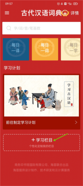 1、进入到软件主界面,往下翻,会看到有一个“+学习栏目”按钮,点进去。