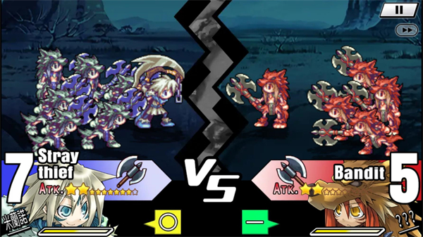 4、战斗一开始的交锋是无法进行任何操作的,会按照武器相克和能力值大小来削减双方编制。武器相克这个系统尤为重要,突击时会有几率触发"猛烈突击",可以削减对方大量编制。运气够好会出现暴击,会直接把联盟队长优先打倒,联盟队长被打倒的话,小兵就会进入"恐慌状态"导致战斗力下降,如果是我方被打倒将不能使用技能!被攻击单位承受住突击后会进行反击,反击时会有几率触发"猛烈反击",可以削减对方大量编制。不过猎人这样的远程单位进行突击时不会受到反击,被突击时也不会反击。还有一些单位,比如女主角拥有"反击完全防御"的特技,那么就不怕对方的反击。