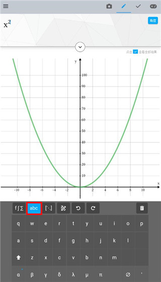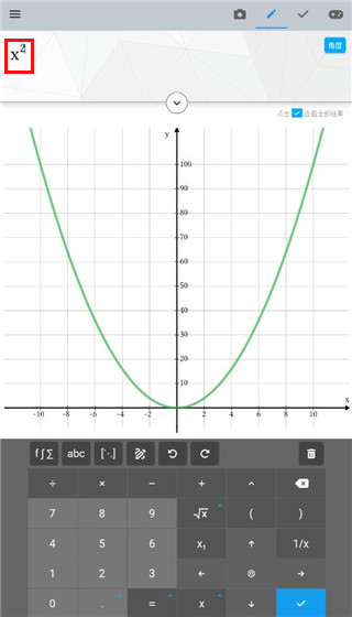 4、当打出x的平方时,还可以绘制出x二次方的函数图