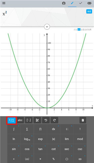 2、点击左上角的科学符号,还可以展开更多的数学符号