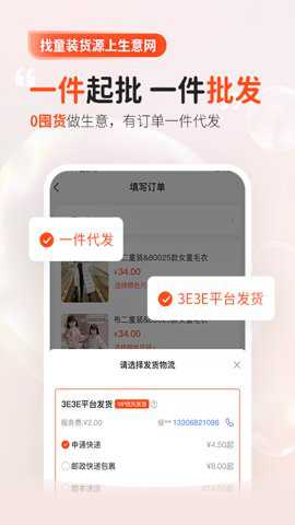 1、使用生意网童装货源,你可以轻松选择款式,下单、发货、售后全链路的操作都非常高效、便捷、实用。