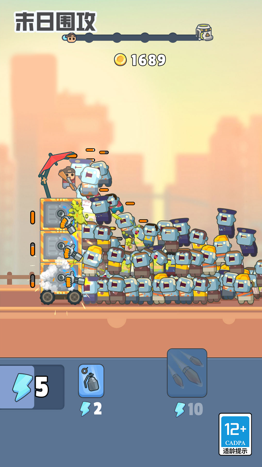 《末日围攻》是一款好玩的塔防策略游戏。末日即将来临,许多僵尸在街上游荡,玩家需要建造一个移动堡垒,以此来抵御来自僵尸的猛烈进攻。游戏画风超萌可爱,明明是对抗激烈火爆的战斗场景,却因为迷你版的武器、塔楼和各式僵尸,带给玩家一种游戏中的角色好可爱的错觉。赶紧来试试吧!