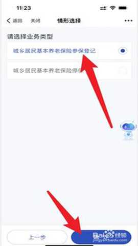 3然后 选择城乡居民基本养老保险参保登记 进入确定缴费即可