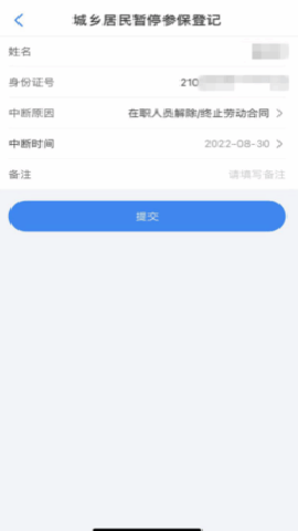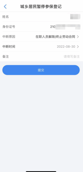 6、根据页面提示,选择中断原因、中断日期,确认无误后,点击提交即可。