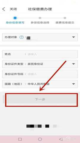 社保缴费办理页面,输入相关信息,提交下一步查看账单进行支付。