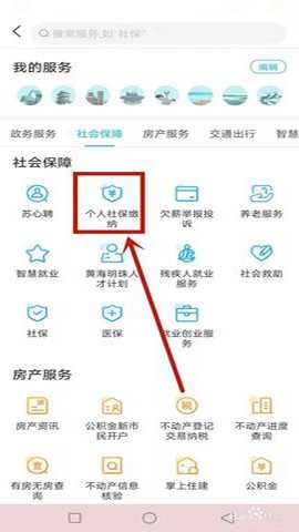 打开我的盐城软件,点击选择个人社保缴纳项目。