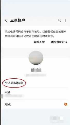 进入三星帐户点击下方的个人资料信息进入